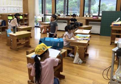 1年生の教室では、連絡帳を書いている子がいました。