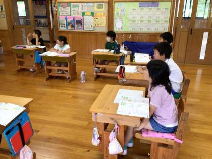 今日は雨が降ったり止んだりで、湿気もありますが、教室の中は子どもたちが明るく過ごしています。