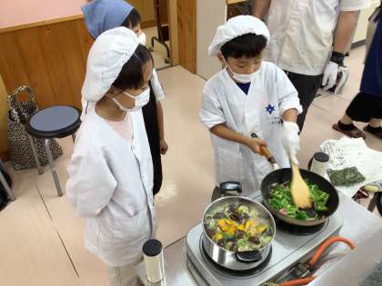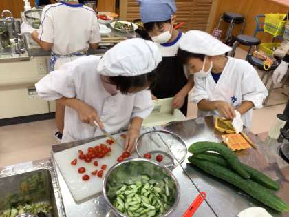 炒めたり、包丁で切ったり、2年生とは思えない、なかなかの腕前に驚きです。