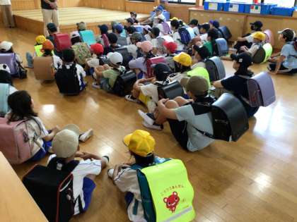 今日の下校の会では、スクールバスの中で困ったことが起きてしまったら車内のブザーを押したりクラクションを鳴らしたりすること、不審な人を見かけたら近くの家の人に助けを求めるなど、安全について話しました。