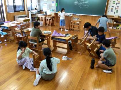 9月になり、背が伸びて、机と椅子の高さが合わなくなってきた子がいます。