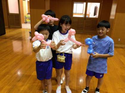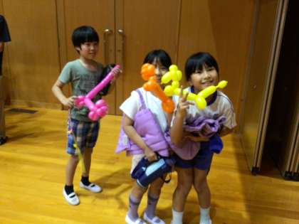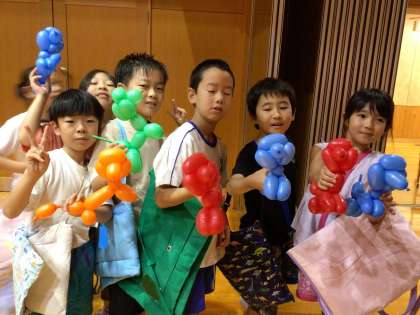 終わりに、子どもたちから「サックスの曲がすごくよかったし、バルーンアートは難しかったけど楽しかったです」などの感想が発表されました。保護者の方からも「サックスを楽しそうに吹いていて、私も楽しかったです。バルーンアートは怖かったけれど、やってみてめっちゃおもしろかったし、またやってみようと思いました」といった感想が聞かれました。