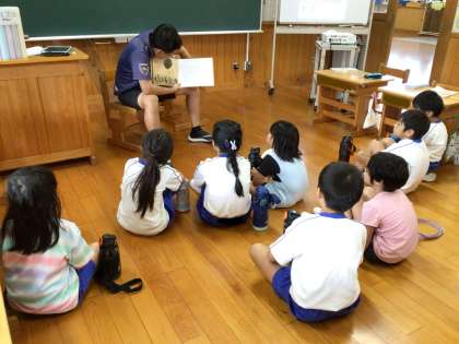 教室では、図書室から借りた本を先生が読んでいました。
