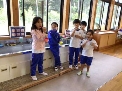 さっそく歯磨きをして準備をしていました。
