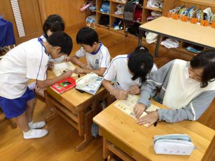朝の活動の時間では、5年生が後期の掲示物を作成していました。