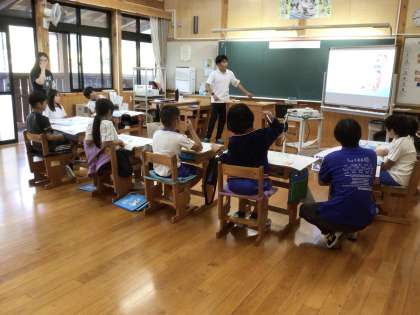 4年生は、愛知工業大学地域防災研究センターの方や、愛知工業大学の学生ボランティアの方に来ていただき、自然災害に対しての備えについて学習しました。とても楽しそうです。