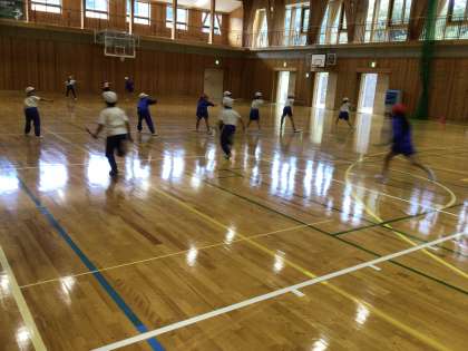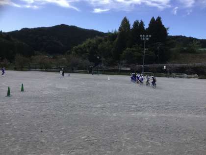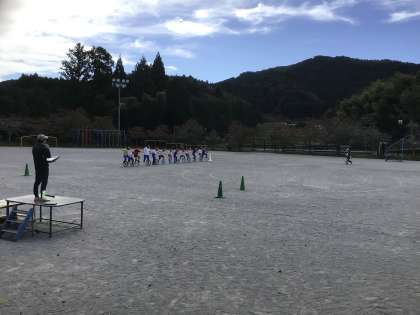 4〜6年生は一輪車の練習。低学年は体育でリレーを練習をしています。