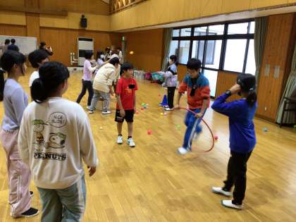 5種目のゲームに班ごとに協力し合って挑戦し、記録を競います。