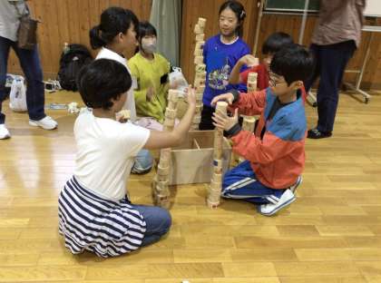 ボールが何個入るか、積み木をどれだけ高く積み上げられるかに挑戦中です。