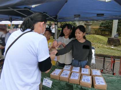 子どもたちは、田植えをした苗が実り、消費者の手元に届くまでの流れの一部分を体験して、いろいろ感じ取ることがありました。完売したときは、とても喜んでいました。貴重な学びの機会となりました。ありがとうございました。
