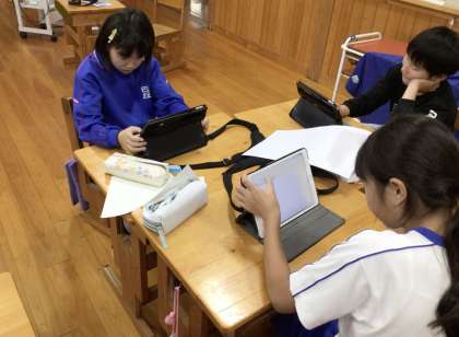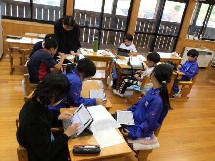 下山地区にあるお店などを調べ、地域をピーアールするため、タブレットにまとめました。