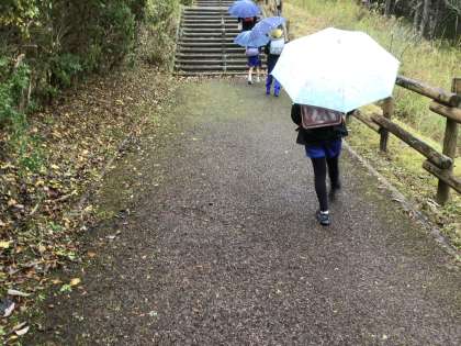 今日は雨に降られた登校となりましたが、子どもたちは元気に登校しています。