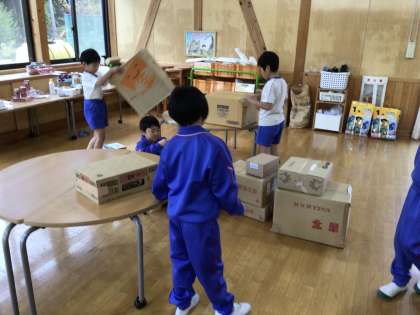 2年生は体育の授業で使う小道具作りをしています。ゲットボールという競技だそうです。試合のことを想像しながら楽しく作っています。