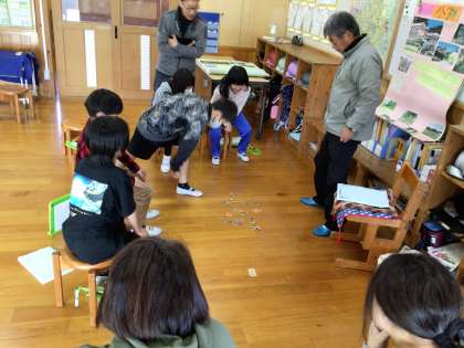 当時の子どもたちの遊びで流行っていた「メンコ」遊びを体験しました。