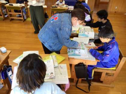 教科書にある地図に、自分のお気に入りの施設を書き込んで、そこへ行けるように道案内するという学習です。