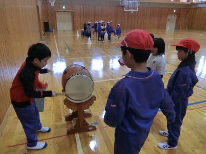ペアになって体操をするのですが、そのときの合図を和太鼓ですることになりました。