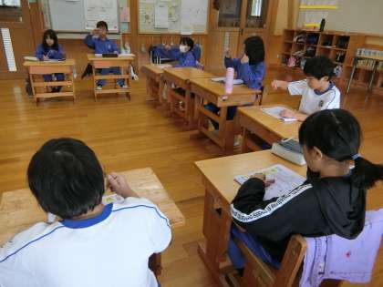 「兆」の筆順に気を付けて、空書きをして確かめました。