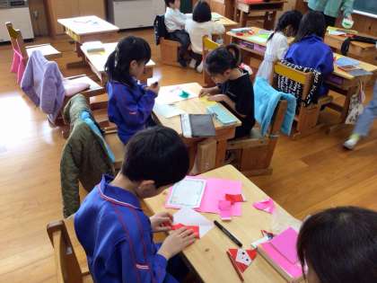 1年生は、3時間目にクリスマスカードを作っていました。