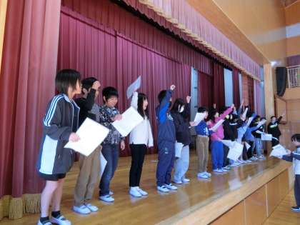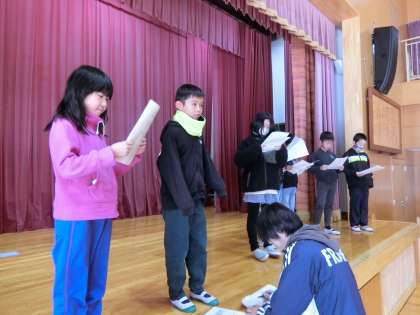 総合的な学習の時間に学んだ内容を発表する練習でした。