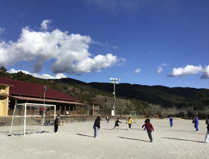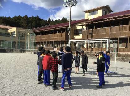 運動場から「雪だ!」「雪が降ってきた!」と子どもたちの歓声が聞こえました。