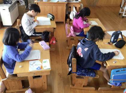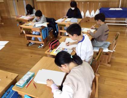 子どもたちは、これまで学習した内容をプリントで総復習しました。