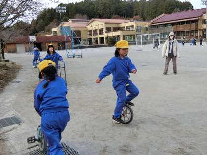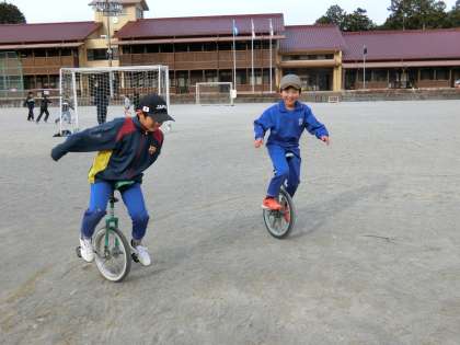 子どもたちは、やっぱり一輪車が好きなようで、1年生の子や2年生の子たちが乗っていました。