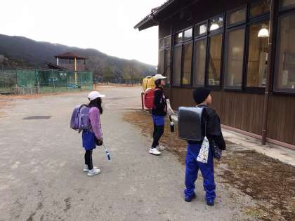 朝、登校すると子どもたちがワークスペースをのぞいていました。