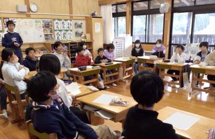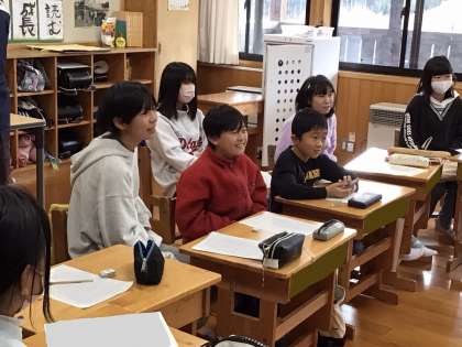 5、6年生が、ひとつの教室で一緒に話し合いました。