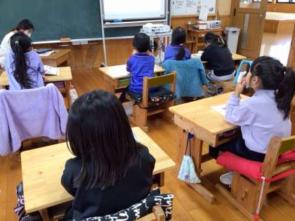 物語の発展学習として「花さかじいさん」の映像教材を視聴しました。