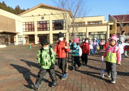 1、2年生のそり教室の出発式です。