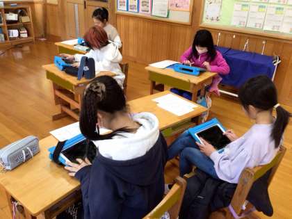 朝の活動の様子です。 身支度をしたり、タブレットをして過ごしたりしました。
