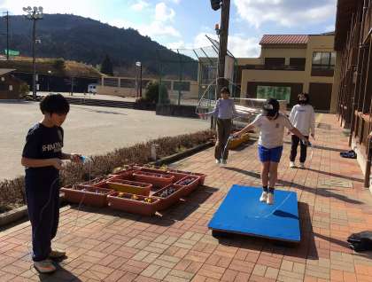 子どもたちが、なわとびの練習をしました。