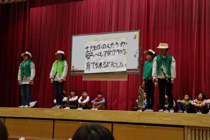 4年生は、「下山の方々が、安心して農作物を作ってほしい」という思いをもち、そのためのアイデアを考えて発表しました。