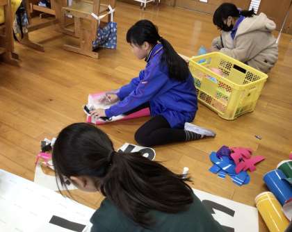フェスティバルで使った飾りをリメイクして、6年生を送る会の飾りにするのだそうです。