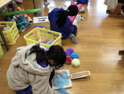 先週のともえっ子フェスティバルで使った飾りを教室に広げていました。