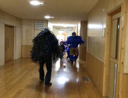 子どもたちは、元気な掛け声で鬼たちを退治しました。