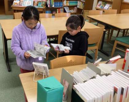 1年生の子たちが本を借りていました。