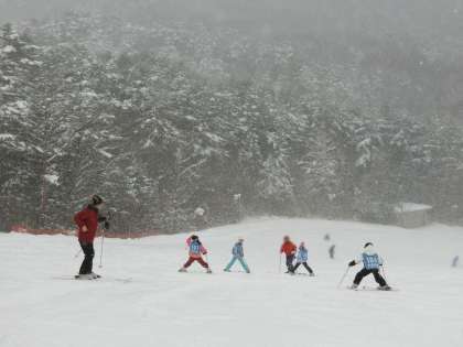 雪が途中で多く降りましたが、時折晴れ間がのぞくこともあり、充分にスキーを楽しめたと思います。