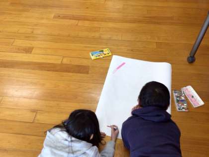 文字の色を虹の色にしてきれいに仕上げよう、とアイデアを出し合っていました。
