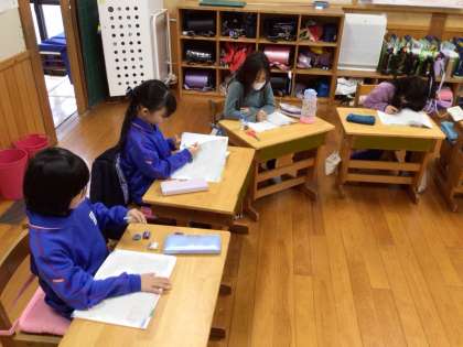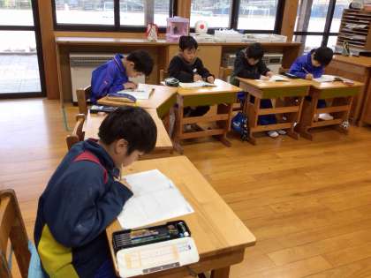 授業の終末になり、子どもたちはさっと問題集を用意して取りかかりました。
