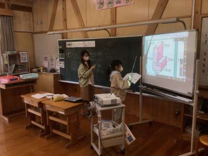5年生は公式をつかって立体の体積を求めています。頑張って取り組めています。