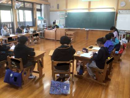 6年生は朝の活動で学習プリントに取り組んでいました。静かに集中して取り組めています。