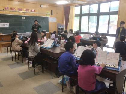 3、4年生が音楽の授業に取り組んでいました。鍵盤ハーモニカと歌のグループに分かれてひとつの曲を演奏しました。5年生は理科の授業で「天気の変化」について動画を見ながら学習していました。動画があるととてもわかりやすいですね。
