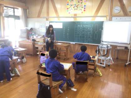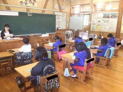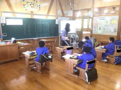 1年生は国語の時間でした。文をつくっています。2年生はテストをしていました。集中して取り組めています。