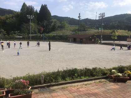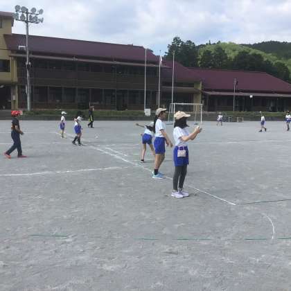 5、6年生が体育でボール投げの測定をしていました。体力テストでいい結果が出るといいですね。