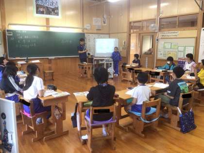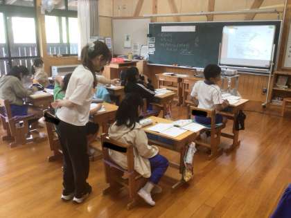 5年生は算数で体積の求め方の勉強しています。6年生は分数の割り算の解き方についてみんなで考えていました。