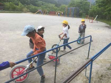 ともえタイムの様子です。1年生の子も一輪車がずいぶん上手になってきました。