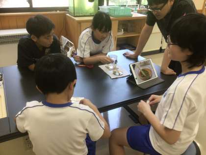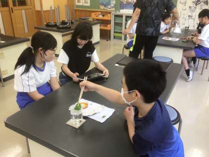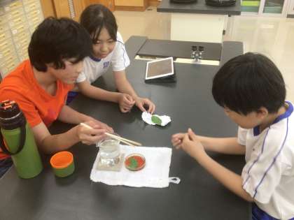 ジャガイモの葉っぱを使ってデンプンのでき方を調べています。