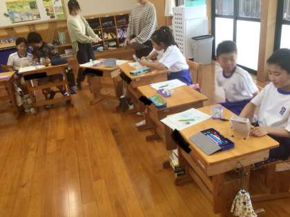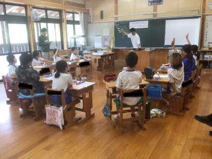 電池の向きを変えると電流の流れ方は変わるのか、実験をしています。次はモーターを速く回すにはどうしたらいいのか調べたいという声が聞かれました。