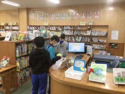 おはようございます。月曜日の朝は読書の時間です。朝からたくさんの子どもたちが図書館に本を探しにきました。